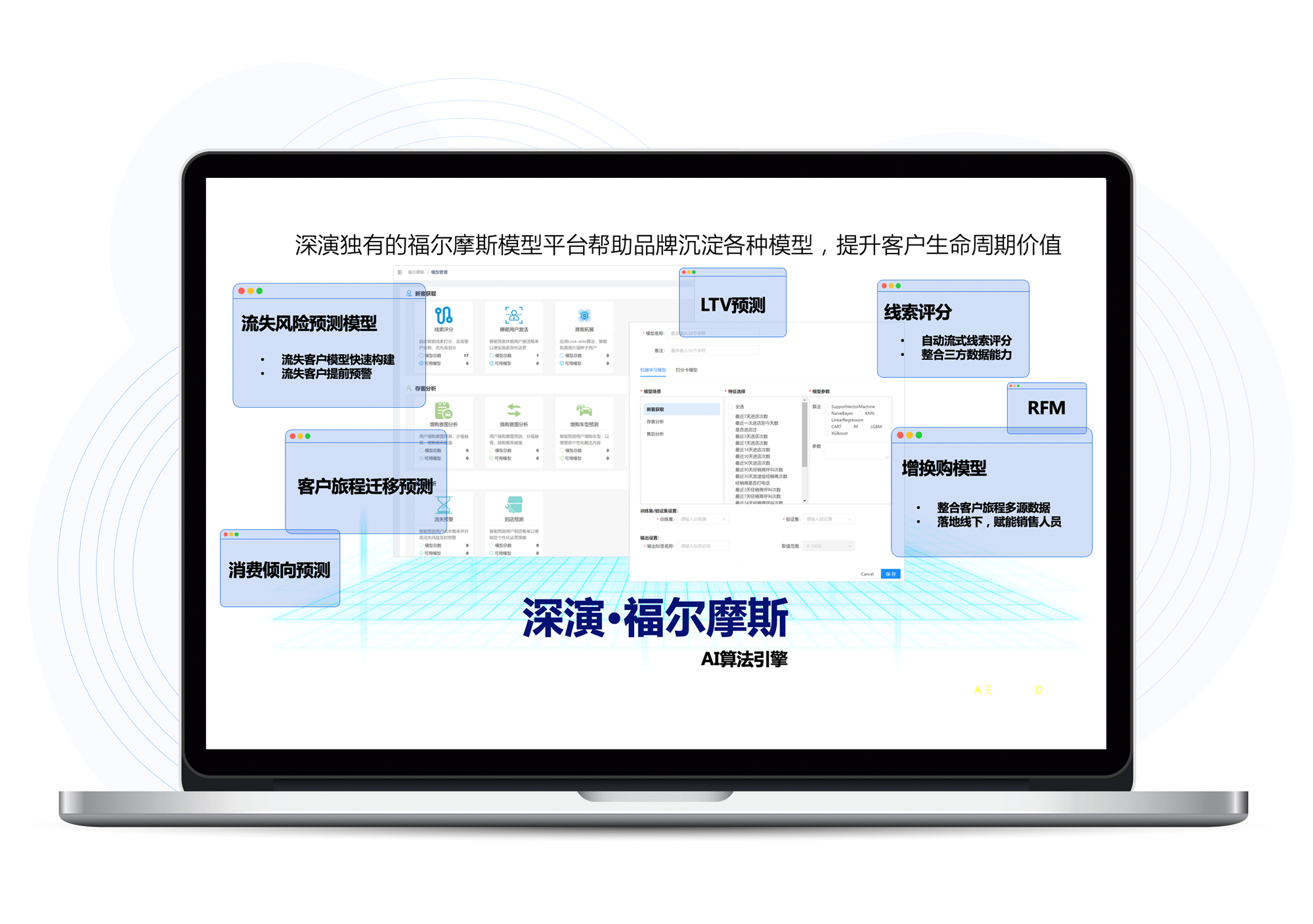福尔摩斯AI是ibet智能自主研发的AI算法模型平台,内嵌广告和用户运营两大模型体系,为ibet智能营销决策云提供底层能力支撑,提升客户全生命周期价值